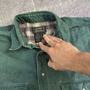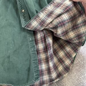 Men's Vintage 90's Eddie Bauer Green Flannel Lined Canvas Button Up Shirt Sz L