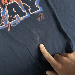 Shirt is in good condition overall has no major rips stains or tears, does show some wear (pictured above). Fits true to size men's XL