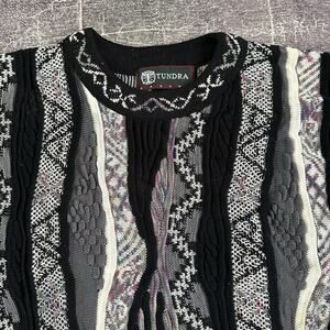 Men's Vintage 90's Tundra Black Purple Textured Coogi Like Crewneck Sweater Sz L
