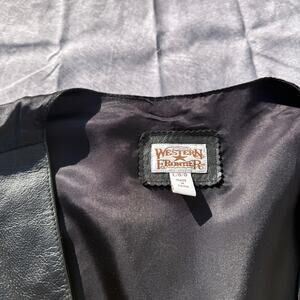 Men's Vintage 90's Western Frontier Black Leather Waistcoat Vest Jacket Sz Large L VTG Retro. In very good overall condition. See photos for extra details. Feel free to message me if you have any questions!