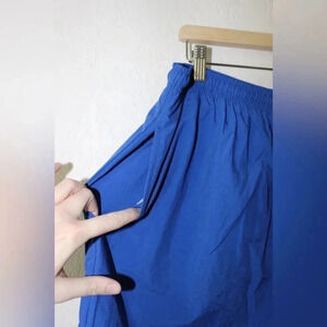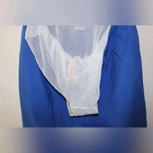 Men’s Vintage Adidas Lined Swim Trunks Size Large. These are in a blue color way with pockets on each side and a drawstring waistband. These are in good used condition with no flaws.