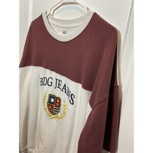 The product is a men's vintage BDG Jeans sweatshirt from Urban Outfitters, featuring a maroon color. It is a regular fit crewneck sweatshirt, sized medium. Perfect for urban outfits with a retro vibe, this sweatshirt is a stylish addition to any wardrobe. The Y2K aesthetic adds a unique touch to the classic design, making it a standout piece for men looking to make a statement with their fashion choices.