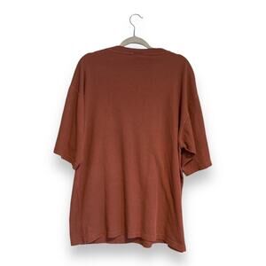 Description: Classic 90s/Y2K grunge brick red ribbed cotton t-shirt by Bad Boy Club. This heavy duty cotton t-shirt feature 1/4 Button down neckline, Crewneck cut and a rich color. Great school and casual wear shirt.
