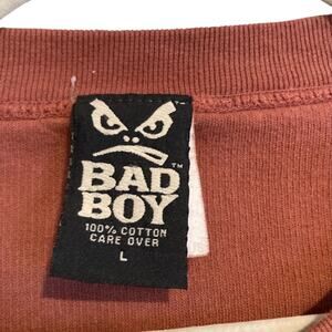 Mens Vintage Bad Boy Club Brick Red 1/4 Button Ribbed Cotton T-Shirt Size Large
