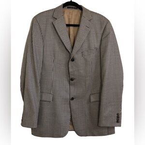 Men’s Vintage Boss Hugo Boss Black Brown Tan Check Silk Wool Sport Coat Size 40R