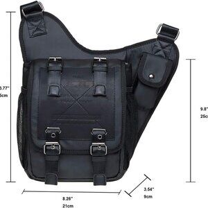 FEATURES: 1* main bag, 1*mini ipad /cell phone compartment, 1*inner categories pocket, 1*front bag , 1*side small bag. Adjustable padded shoulder straps for comfort. Strap is from 55cm to 120cm, shoulder width of about 7cm. Good handfeel and Light backpack.