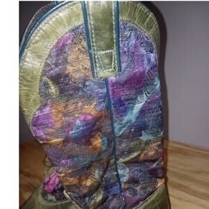 Men's Vintage Capezio Boots Cowboy Western Green Floral Tapestry 9