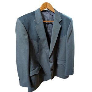 Men's Vintage Circle S Dallas Texas Western Suit Jacket Blazer 48L Blue