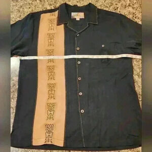 I hate to part with this beauty, but I have lost a good bit of weight so it's time to share with someone else. This is an awesome vacation shirt and I always get compliments when I wear it. Measurements are in photos. (1)