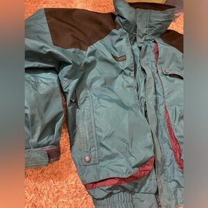 Men’s Vintage Columbia Powder Keg Winter Coat. Genuine vintage powder keg jacket! Completely waterproof and perfect for the slopes or every day winter wear! No holes or tears, just fading from age. Tagged size medium, lots of room for layering. Large pockets, zips up the front. Turquoise color with deep purple detailing.