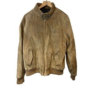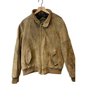 Men's Vintage Crew Tan Pig Suede Leather Plaid Lined Bomber Jacket Size 46