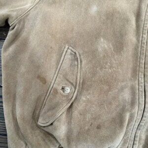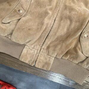 Men's Vintage Crew Tan Pig Suede Leather Plaid Lined Bomber Jacket Size Xl