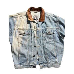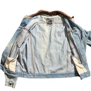Men’s Vintage Denim Jacket DASH Leather Collar Sz XL