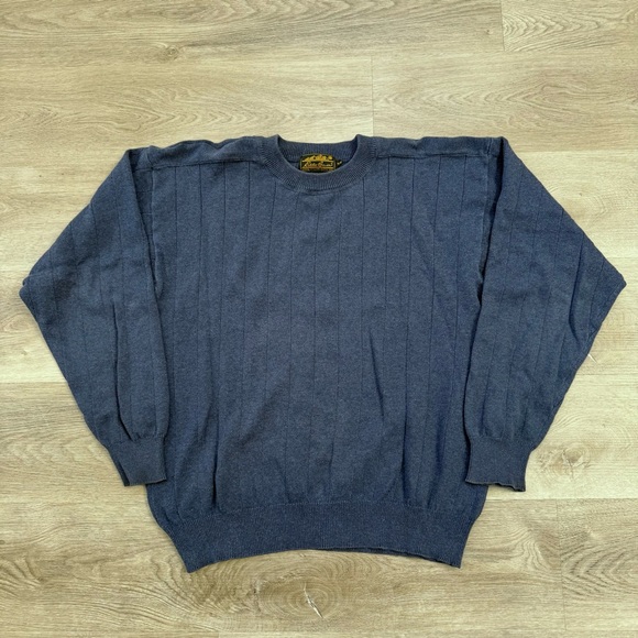 Men's Vintage Eddie Bauer Sweater Navy Blue Knit M Preppy Fisherman Greek City