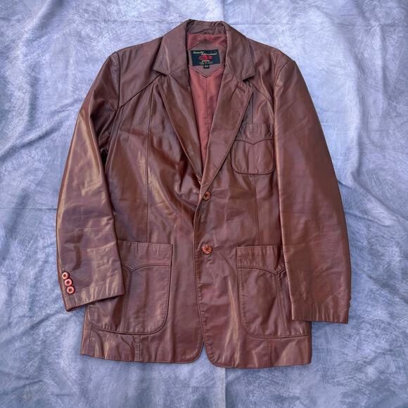 Men's Vintage Fantastic International Brown Leather Jacket Coat Sz 44 Large VTG