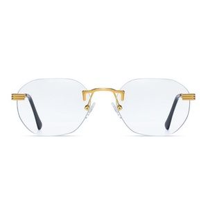 Men's Vintage Gold Frame Rimless Hip Hop Luxury Round Clear Lens Glasses