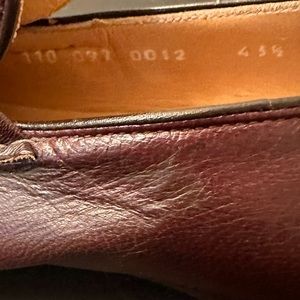 Men’s vintage Gucci Loafers. Dark brown color. The bottoms show wear. The tops look great. Look around. These really are in very good condition. There is only one place on one horsebit attachment that shows some corrosion, I’m sure a good shoe repairman could shine that up. See photos.
