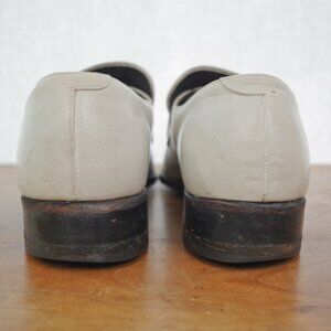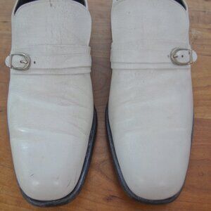 This listing is for a vintage(60's-70's) pair of Hanover USA Made Men's Shoes. They are Monkstrap in style with front buckles and in a white leather. They are lined with a mix of leather & cloth and have leather soles.