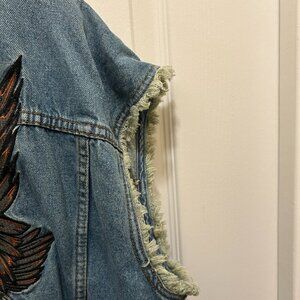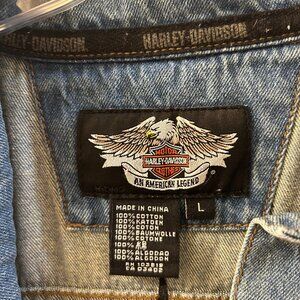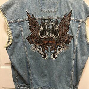 Men's Vintage Harley Davidson Jean Vest with motor patch on back Size Large