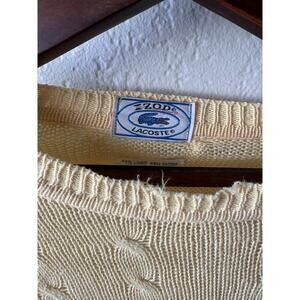 Vintage Lacoste, IZOD Lacoste, preppy style, cable knit sweater, linen blend sweater, retro fashion, Made in Hong Kong, menswear, classic knitwear, tennis sweater, Ralph Lauren alternative, Ivy League style, coastal grandma, grandpa core, quiet luxury, cottagecore, butter yellow, light yellow sweater, cottagecore, y2k, coastal grandma