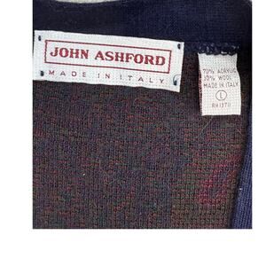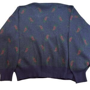 Men's Vintage John Ashford Blue Red Paisley Grandpa Button Down Sweater Size L