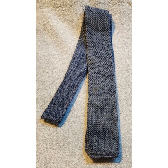 Mens Vintage Knit necktie. Private Club Gray Square Tip 100% Virgin Wool