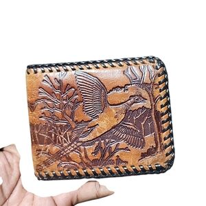 Mens Vintage Leather Hand Tooled Hunting Scene Wallet