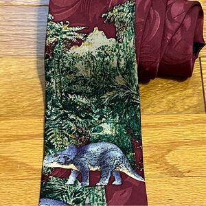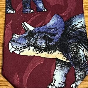 Men’s Vintage MBP Jurassic Park Triceratops Dinosaur Burgundy Necktie / Tie