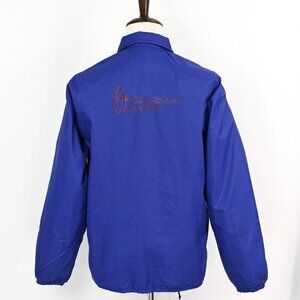 Vintage Pla-Jac by Dunbrooke Blue Snap Button Jacket - The perfect jacket for a cool breezy day. This blue jacket on the front left pocket reads "Weber County Recreation Champions 1989" and on the back reads "Anderson Lumber: Come to Anderson for Answers." The hem of the jacket features a string like rope through it, so it can be adjusted anyway you like.