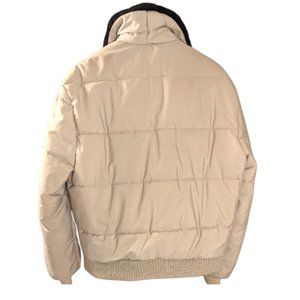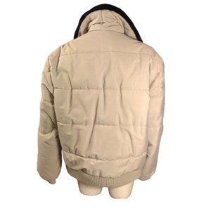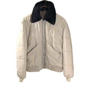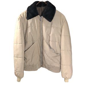 Men's Vintage Puffer Ski Jacket in Tan with Faux Fur - Medium Retro - 1960-70s
