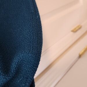 Mens Vintage Ragged Mountain 1/2 zip fleece Made in USA. Size Large. Color is a dark blue/ green (hard to show in the pics). Front hem is coming undone...just needs a little sewing (see pics). Pilling from regular wear and washes and minor marks on the sleeves (see pics). Approximate measurements: 23" pit to pit, 22.5" hem, 28" length, 3" collar, 12" zipper.