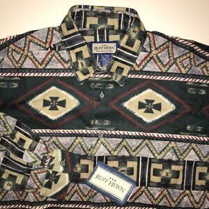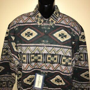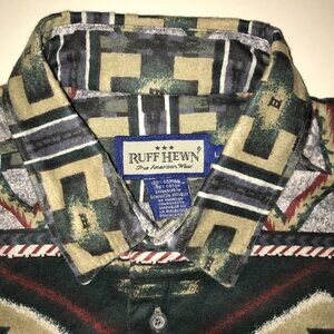 Men's Vintage Ruff Hewn Alaska Apache Blanket Aztec Flannel Button Shirt-Size L