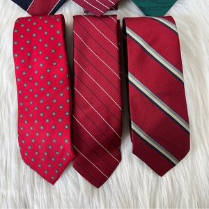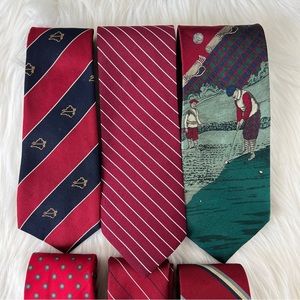 Men's Vintage Silk Tie Bundle Red Stripe Dotted Golf Themed Red Tones 6 Count