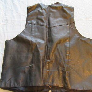 Mens Vintage Silver Bike Black Leather Motorcycle Vest Sz XL