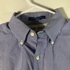 Mens Vintage Tommy Hilfiger Gingham Button Shirt Blue White 15 1/2-35 Cotton