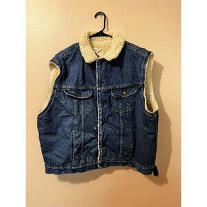 Men's Vintage USA Roebucks by Sears Denim Vest W/ Sherpa Lining Size L [EXCELLENT]