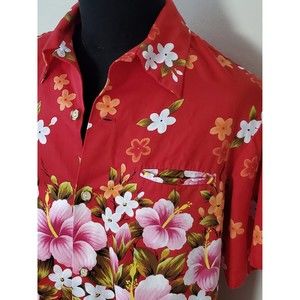 Mens Vintage Ui-Maikai 60s pink and Red Hawaiian shirt men's large