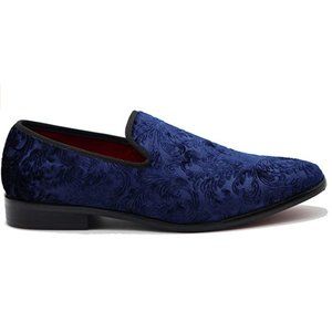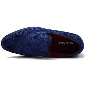 Men's Vintage Velvet Flower Designer Dress Loafers Slip On Classic Tuxedo 35 blu