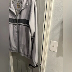 Men’s Vintage Weatherproof Performance lined zippered jacket with interior pocket & two front pockets. EUC. Elastic waist & cuffs. Colors are gray & black. Shell & lining are 100% polyester. Pit to pit 24 inches length 26 inches sleeve length 24.75 inches SFPF HOME