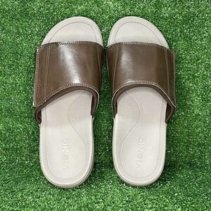 Mens Vionic Stanley Brown Leather Orthotic Slide Comfort Sandals US Size 7