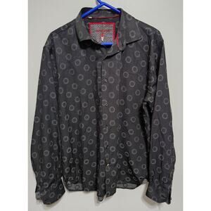 Men's Visconti Black LS Button Up Black Gray Circle Pattern Fold Back Cuff XL