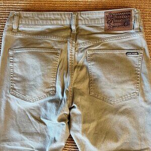 Men's Volcom Khaki Jeans Size 31 Waist and 31.5 Inseam. About a 40.5 Out seam. Slim Straight. Excellent condition. Only worn once or twice. Perfect for all seasons. They do have some stretch as well.