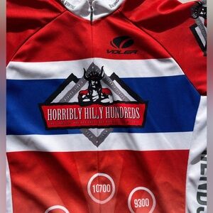 Men’s Voler Jersey Multicolor Short Sleeve Cycling M 3/4 Zip Pocket Racing Road. Polyester. Three pocket comparment around the back.