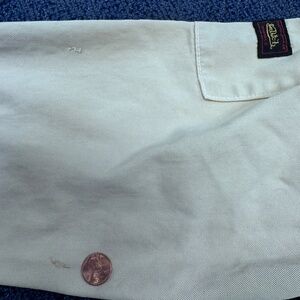 This Von Dutch zip up mechanic's style jacket is khaki colored and unlined. The color is best captured in the photo with the measuring tape and the photo that shows the collar and zipper. This jacket got a lot of wear but is still in very good condition.