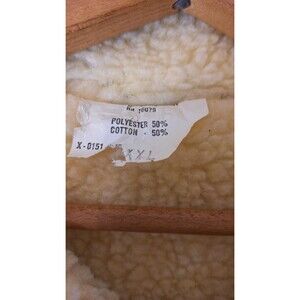 This is a men's vintage cabin core outdoor puffer vest in size XXL with a sherpa lining, snap button closure, and multiple pockets. The vest is suitable for outdoor activities and workwear, featuring a stand-up collar and a vintage style. Made of polyester with a softshell fabric type, it is lightweight, breathable, and packable. The brown vest is designed for winter, fall, and spring seasons, offering comfort and functionality for activities like walking, hunting, skiing, and hiking. PTP 27.5 in. Length 33.5 in. NO BRAND TAG.