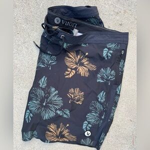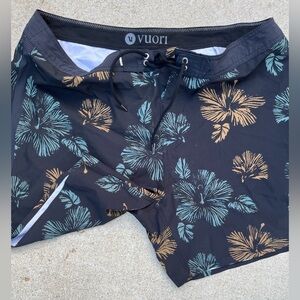 Men's Vuori Shorts Multicolor Floral 38 Pocket Active Logo Beach Gym Surf Swim. Poly blend.