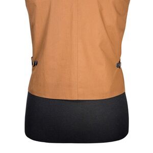 Featuring a sleek V-neckline, classic notch lapel, and five-button front closure, this formal vest delivers a sharp, polished look. The pointed front hem and three functional flap pockets add both style and practicality, while the fully lined interior ensures all-day comfort. The adjustable buttoned back, made from chino cotton in a refined beige tone, allows for effortless customization and a perfect fit.