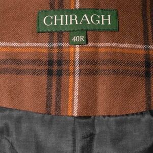 Mens Waistcoat Suit Lapel Vest 40R Brown Orange Plaid Wool Formal Wedding Party