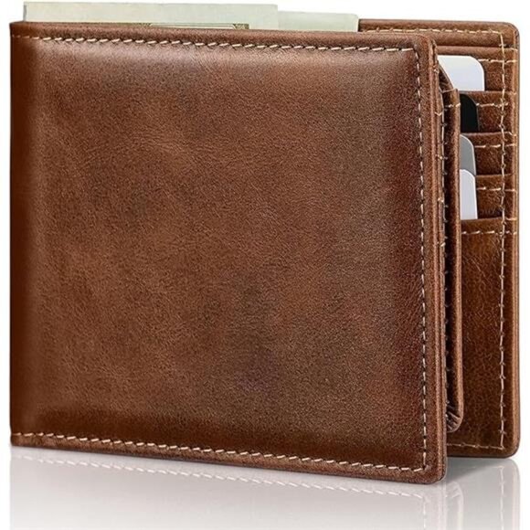 Mens Wallet Bifold Genuine Leather RFID Blocking Wallet for Men with 2 ID window
