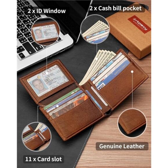 PRACTICAL DESIGN - This bifold wallet has 11 card slots, 2 cash pockets, and 2 ID windows for easy sorting of your money, cards, and ID. With plenty of storage and simple access, this bifold wallet was crafted for efficiency and extra capacity